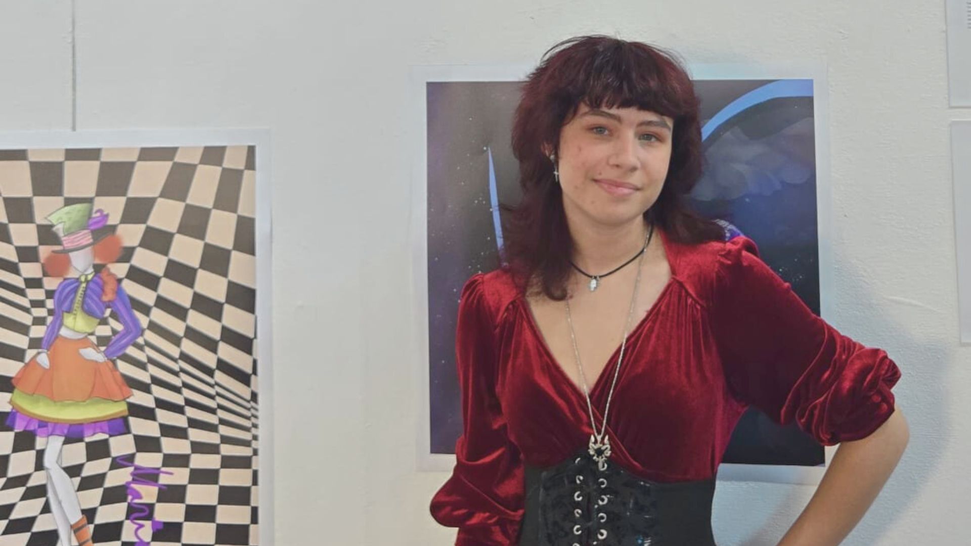 - Kun Maria (17 ani) – Mad Hatter, o ilustrație digitală expresionist-fantastică, inspirată de estetica absurdului și de „Alice în Țara Minunilor”.