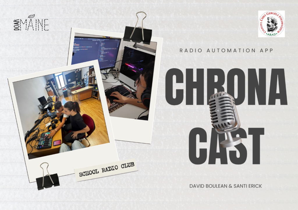 Ideea proiectului, intitulat ChronaCast, s-a născut din nevoia practică a lui Erick, președintele clubului de radio la „Csiky Gergely”. Acesta a observat că echipele de radio din licee își pierd toate pauzele gestionând manual muzica, deoarece softurile de automatizare profesionale sunt fie prea scumpe, fie prea complexe.